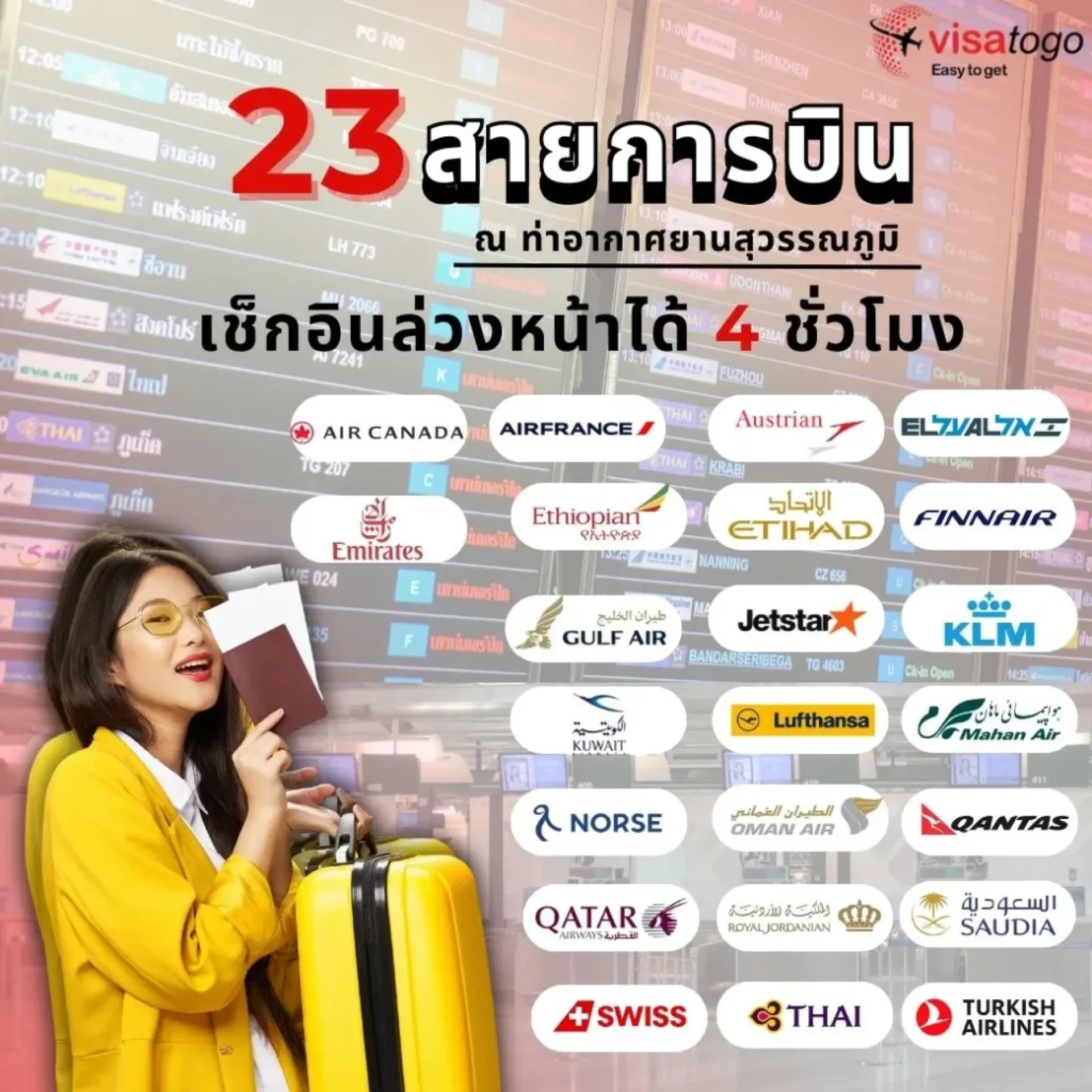 23 สายการบินสามารถเช็กอินล่วงหน้าได้ 4 ชั่วโมง