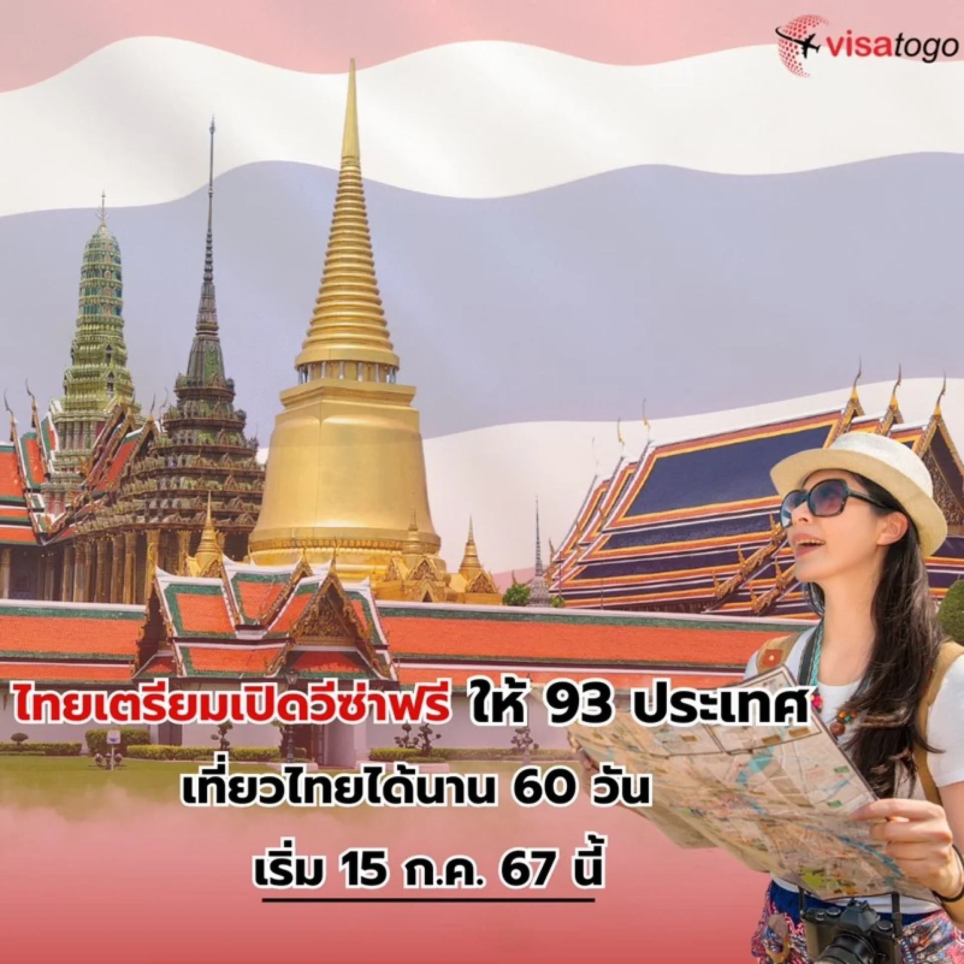 รัฐบาลไทยเตรียมเปิดโครงการวีซ่าฟรีให้กับนักท่องเที่ยวจาก 93 ประเทศ เริ่มวันที่ 15 กรกฏาคม 2567 เพื่อกระตุ้นการท่องเที่ยวและส่งเสริมเศรษฐกิจของประเทศ โดยโครงการนี้จะอนุญาตให้นักท่องเที่ยวสามารถเข้าประเทศไทยโดยไม่ต้องขอวีซ่าเป็นระยะเวลาไม่เกิน 60 วัน
