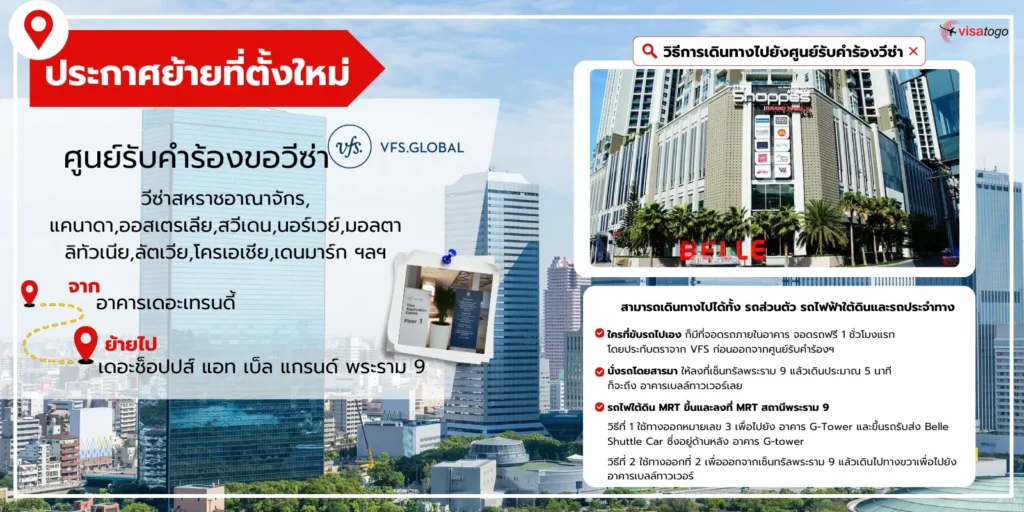 ศูนย์รับยื่นคำร้องขอวีซ่า ย้ายที่ตั้งใหม่แล้วนะ!!